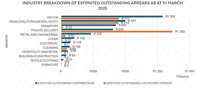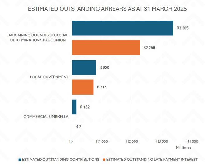 Most of the arrear contributions – R5.6bn – is owed to funds that fall under bargaining councils, sectoral determinations, or trade unions.