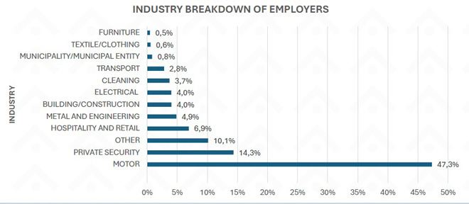 Sixty-two percent of the delinquent employers are in the motor industry (47.3%) and the private security sector (14.3%).