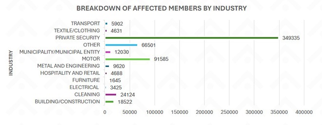 Of the 592 000 members affected by arrear contributions, 59% (349 335) are in the private security sector – mainly security officers.