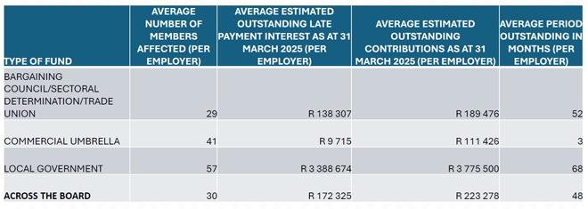 - 5 671 employers have outstanding contributions exceeding R50 000, which have been overdue for five months or more.