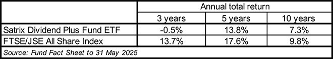 This is evidenced by the variety of returns generated by the Satrix Dividend Plus Index Fund over time compared to the ALSI, as shown in the table.