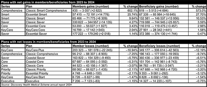Of the 16 main plans in 2024, seven recorded net member and beneficiary gains, while nine saw declines. Growing plans included Essential Smart, Classic Saver, and Classic Smart. KeyCare Plus and Coastal Saver lost the most lives.