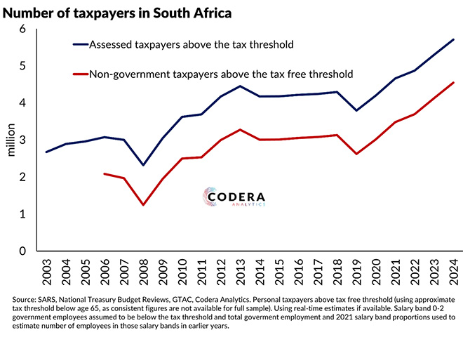 Daan Steenkamp, chief executive of Codera, says that although South Africa is estimated to have 5.5 million taxpayers above the tax-free threshold, more than one million of these are government employees.