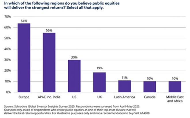“In a market that’s anything but predictable, investors are turning to what they know: public equities. Not out of habit, but because they offer the agility and global reach needed to navigate complexity and capture performance,” said Alex Tedder, Schroders’ chief investment officer for equities.