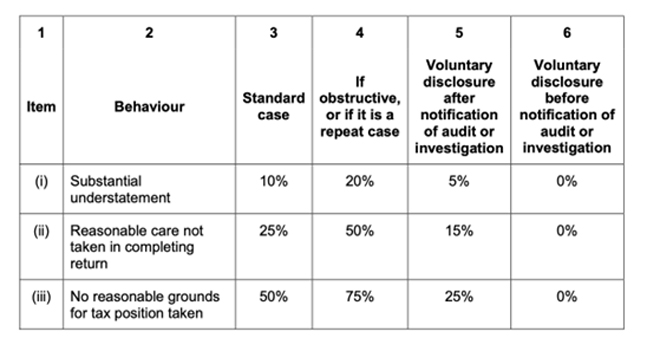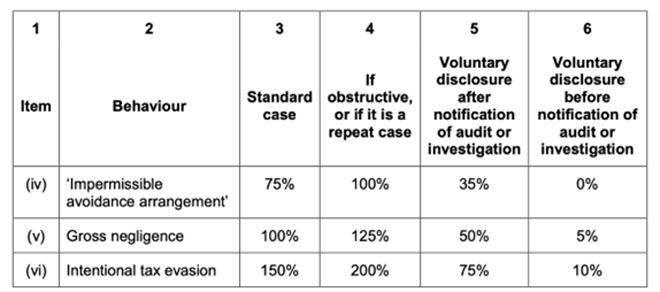 If the taxpayer is not guilty of any of the behaviours in the table, but the understatement is substantial (the greater of 5% of the tax chargeable or refundable or R1 million), the bona fide inadvertent error comes into play.