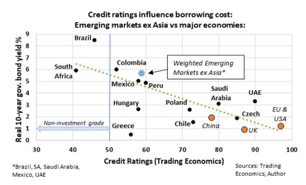 South Africa’s fiscal and, specifically, its debt position is such that the official credit rating agencies classified the country as non-investment grade. Low investment grade is synonymous with high borrowing cost, and vice versa.