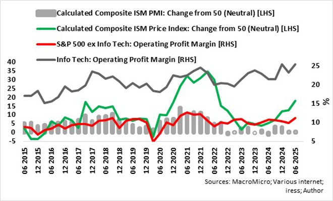 It is evident that the S&P 500 information technology/communications sectors are in a much better position than the rest of the S&P 500 sectors to transfer the rising costs of input and, furthermore, to leverage profit margins on rising costs. Yes, the vacuum between manufacturing and stock market valuation was filled by improved efficiencies.